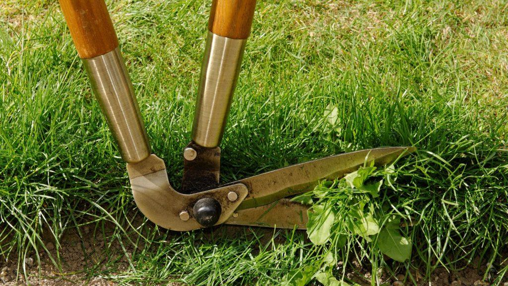 Hand edging is the simple act of using a tool to create a definitive edge around your lawn. Usually for this you’d use a half-moon edging iron or a flat-bladed spade. You could also use shears to just trip the edges of the grass. Use the tool along the edge of a lawn to tidy up the borders, making sure the lawn is ending in clean lines.