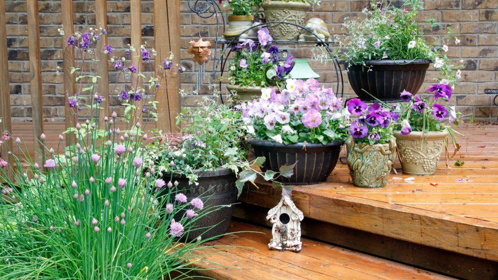 Containers can also be placed on shelves, steps, and other areas that wouldn’t usually have much greenery to save space and bring more life to your garden.
