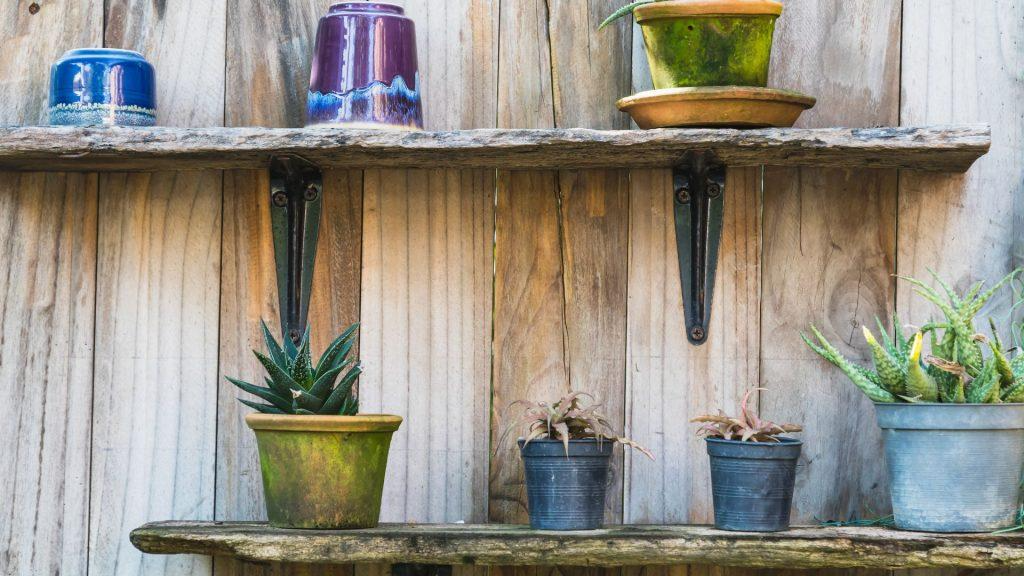 Installing some shelves can help to maximise your outdoor space. You can use them as storage to clear away anything taking up floor space – like spare pots or tools – or you could display plants on them. Whatever you use them for, it saves that space elsewhere in the garden.